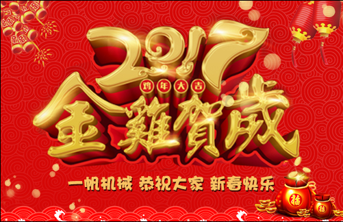 一帆機(jī)械將在春節(jié)期間放假,時間:2017年1月24日——2月3日。期間有任何問題可在線留言,我們將在假期結(jié)束的第一時間與您聯(lián)系。謝謝!