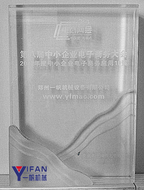 2013年4月25日,"第八屆中小企業電子商務大會"在寧波市南苑飯店隆重召開,本屆大會的主題是"中小企業電商逆襲"。經過專家、評委選舉,專業破碎機品牌鄭州一帆機械設備有限公司最終榮獲“2012年度中小企業電子商務應用10強”,彰顯了一帆公司在電子商務領域的地位。