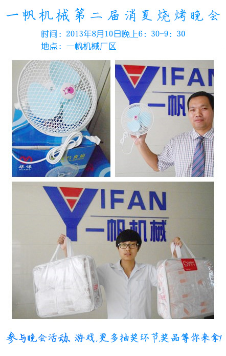 鄭州2013年的夏天,一直持續高溫天氣。鄭州一帆機械設備有限公司為了給員工放松心情,抗擊這炎炎酷署,特地在2013年8月10日晚上舉行消夏燒烤晚會。