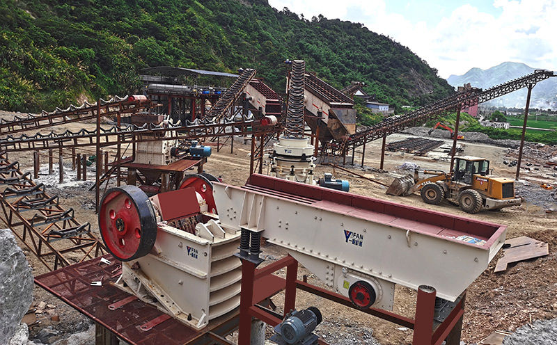 設備配置:顎式破碎機1臺、反擊式破碎機1臺、圓錐破碎機1臺、給料機1臺、振動篩2臺、輕物質處理器1臺