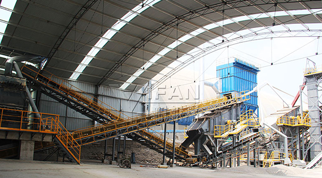 該生產線是鄭州一帆根據當地客戶生產需求,自主研發設計的包含前段破碎到后段制砂的精品機制砂生產線(砂石同出),在一個生產線系統中加工生產出骨料和機制砂兩種成品。其優勢在于,大大提高石灰石物料的利用率,降低整條生產線的廢料量,有效利用生產線廢料來提高產值,整個砂石同出系統,符合國家對質量、節能及環保的要求,實現了真正意義的綠色生產。