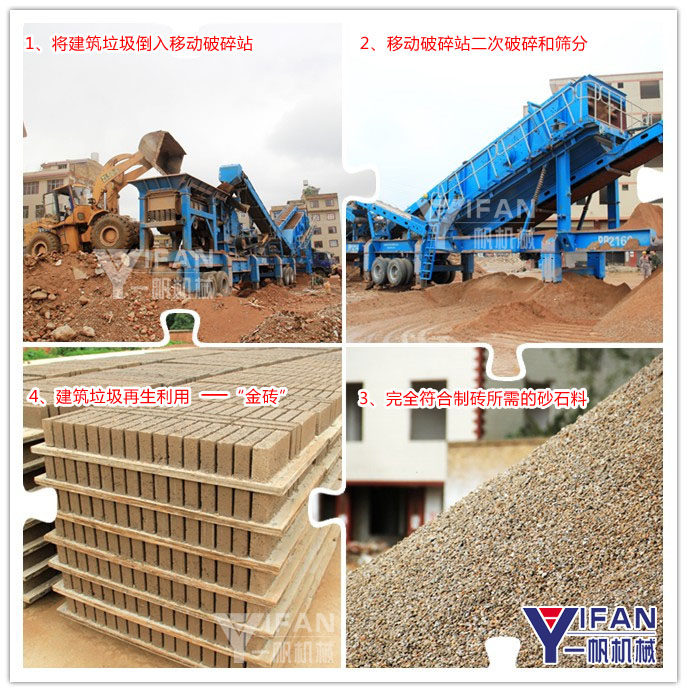 該建筑垃圾處理廠位于云南昆明,這是鄭州一帆機械公司在今年3月份簽訂的一個項目客戶。根據(jù)我們售后的跟蹤了解,該移動式建筑垃圾處理設備每天可處理垃圾250噸至300噸,可日產(chǎn)免燒磚8萬到10萬片。自從該建筑垃圾處理廠今年三月份開始投資我公司的一條反擊式移動破碎站和一條移動篩分站進行試運營后,公司效益得到顯著提高。