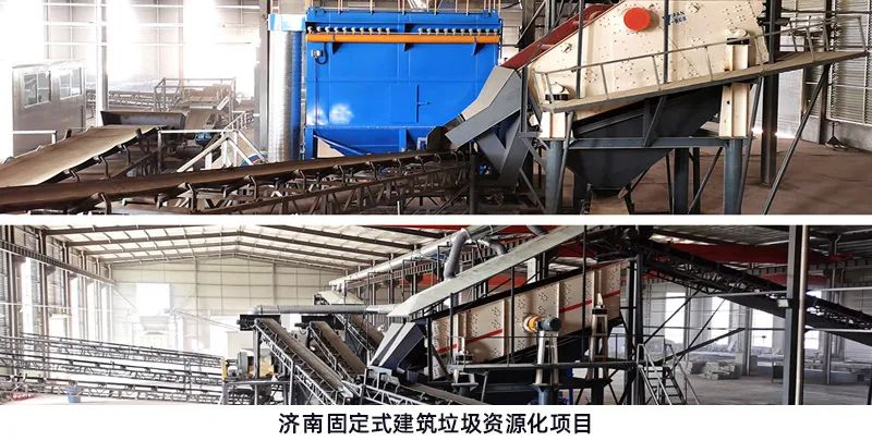 固定式建筑垃圾資源化處理方案是由破碎機、篩分機、料倉、給料機、運輸機、通風(fēng)除塵設(shè)備和控制系統(tǒng)等組成。將建筑垃圾破碎、篩分、輸送,并在適當(dāng)環(huán)節(jié)設(shè)置人工或機械設(shè)備去除雜質(zhì),以生成再生骨料。根據(jù)原料條件和產(chǎn)品要求的差異,形成不同的組合,以適應(yīng)相應(yīng)的工藝要求及生產(chǎn)規(guī)模的需求。