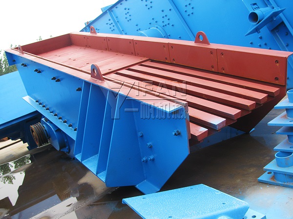 3、在砂石生產線中為破碎機械連續均勻地喂料避免破碎機受料口的堵塞;