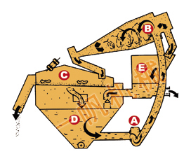 2. Working principle: The compound of sand and water is transported to cyclone, the sand that centrifugal classification concentrate provided to the vibrating screen by the heavy grit, sand and water are effectively separate after vibrating screen dehydration. Through Recycling Box, fine sand and mud and so on returned again to the pool, then are exhausted from the exit when the liquid surface of pool is too high. The material weight concentration recovered by the vibrating screen is 70%- 85%. Adjusting fineness module may come true by changing pulp concentration, adjusting the flooding water yield, changing the grit mouth, then fulfilling its three kinds function-washing, dehydration and screening.